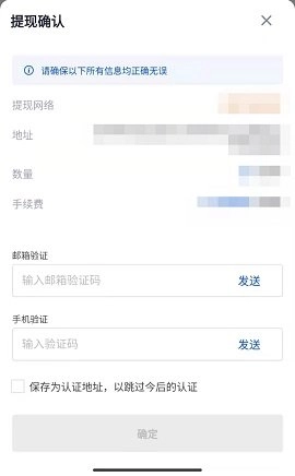 点击提交后,进行提现二次确认,可能需要进行邮箱或手机验证。
