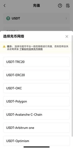 同样的道理也适用于提现网络:在选择提现网络时,所选网络须与充值网络一致。