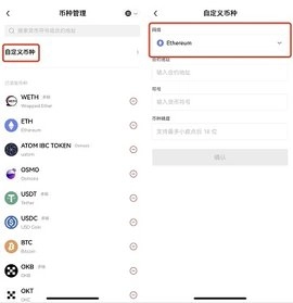 添加自定义币种: