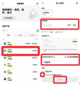 1. 简单赚币分定期和活期两个期限,支持随时申购,活期可随时申请赎回。
