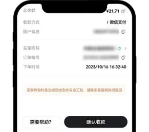 买家付款后,请仔细核实收款账户是否已经收到款项。