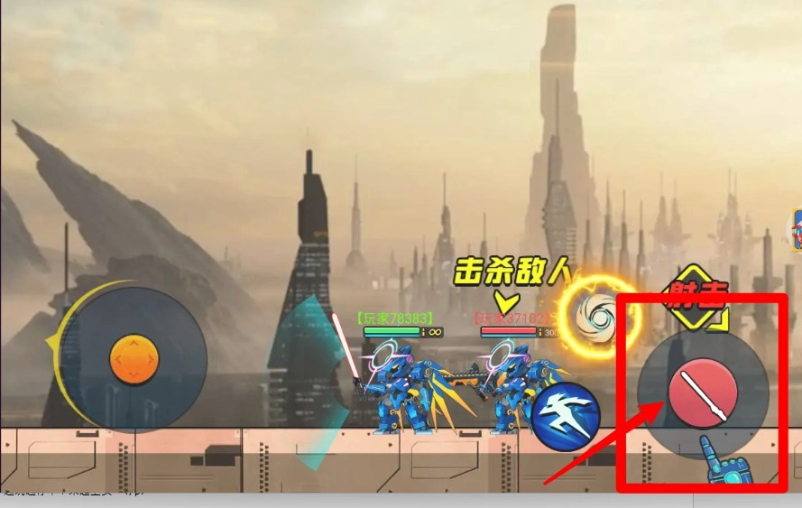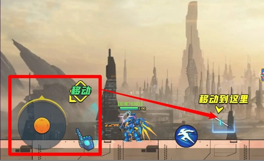 1.移动操作方式:使用屏幕左侧虚拟摇杆控制机甲移动与闪避。