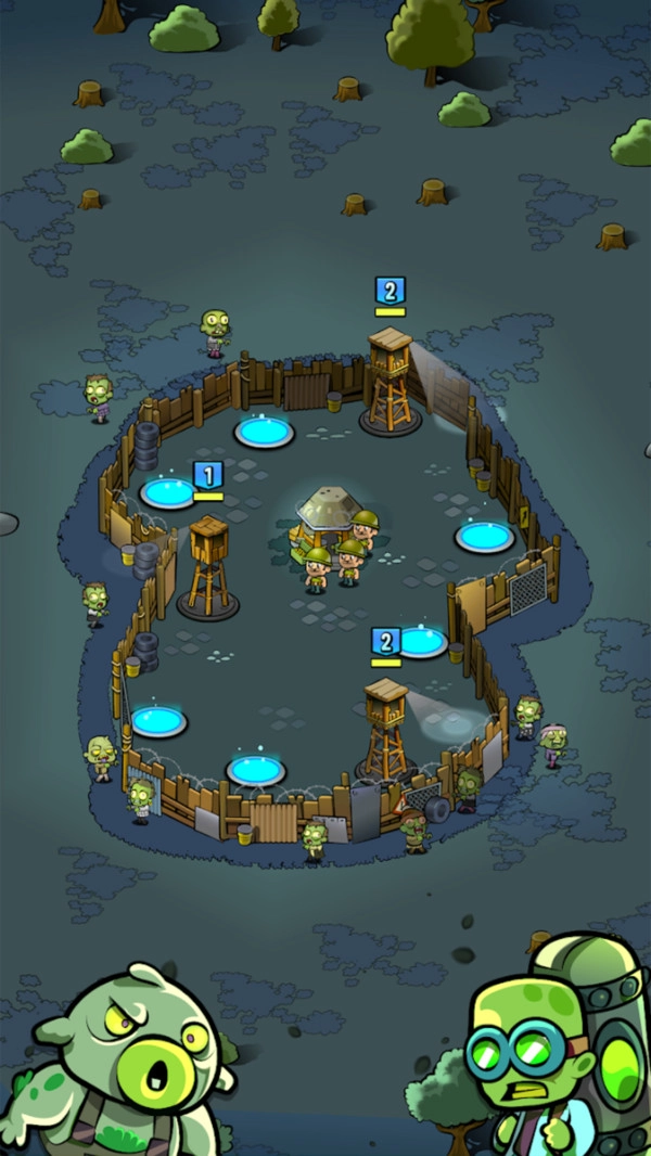 3.实时阻击僵尸入侵:敌人会以波次形式来袭,逐渐提升强度与数量,成功阻挡后可获得金币与材料,进一步用于塔防升级与基地扩建。