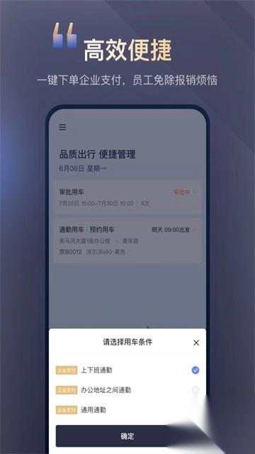 首汽约车企业版,是专为企业客户打造的一款提供高品质出行服务的软件。借助这款软件,员工在加班、差旅、商务拜访等用车场景下,无需自行垫付费用,也无需进行报销,极大地简化了财务与商务人员复杂的报销流程。