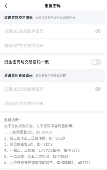 您可以单独选择重置交易密码或资金密码,也可以一键同时重置两个密码;