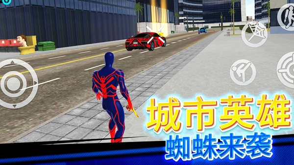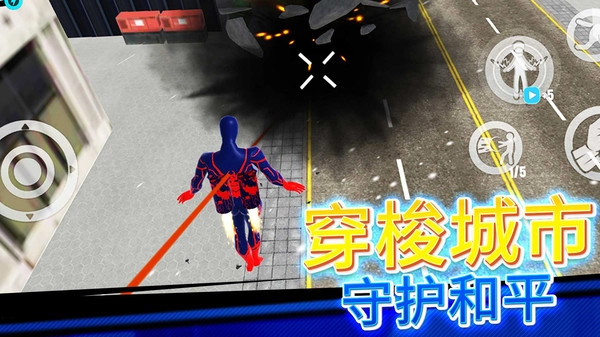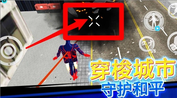 1.点击左边摇杆可以控制蜘蛛侠移动方向,探索整座城市。
