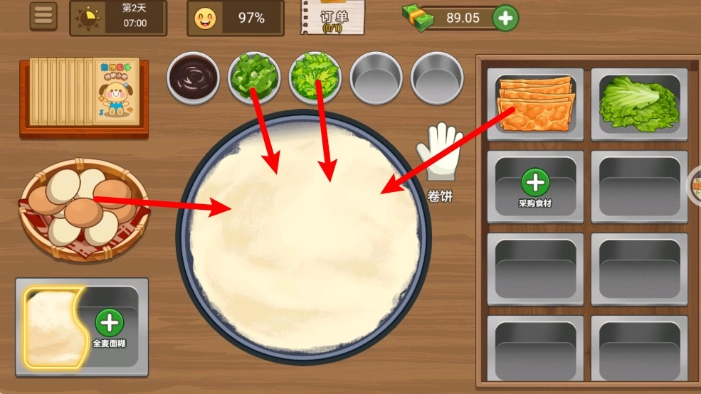 1. 游戏目的:借助制作煎饼持续招揽顾客,扩大摊位规模,进而成为顶级大厨。