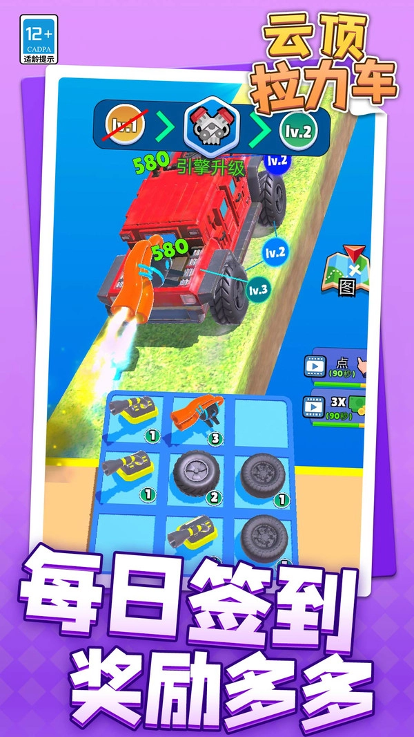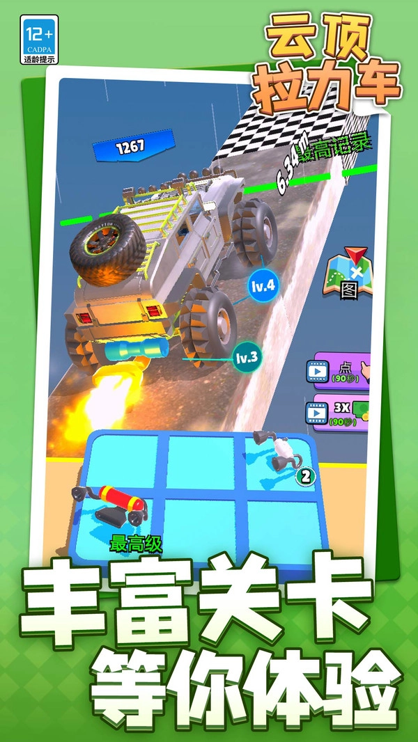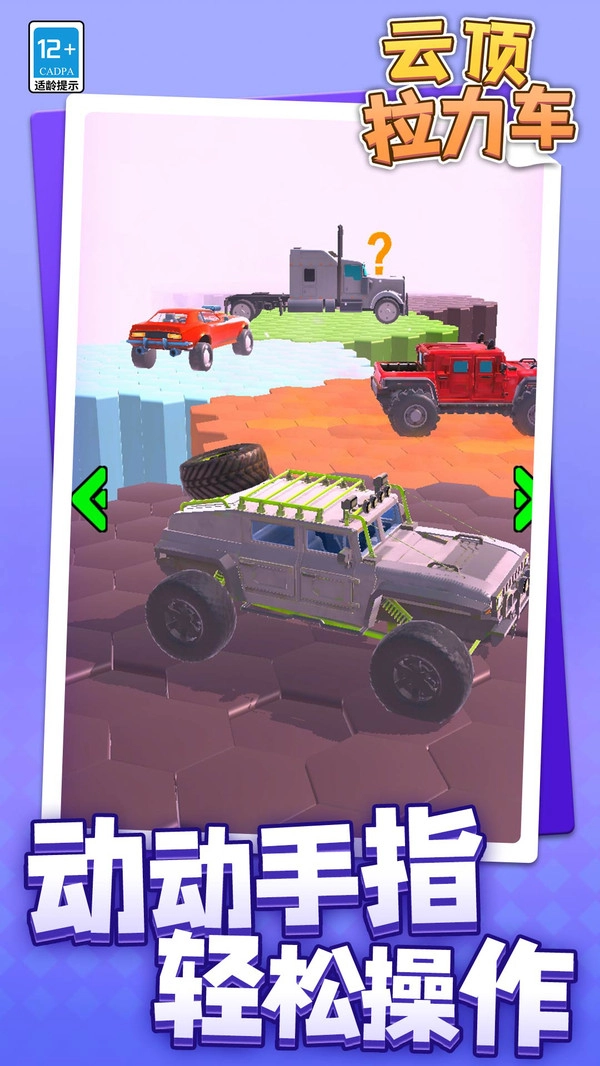 云顶拉力车,带你领略速度与激情的震撼交融!驾驭你的拉力赛车,向着飞向云端的梦想发起挑战。持续强化赛车性能,升级各类配件,跨越重重障碍,一步步解锁更为高远的天空。在形形色色的极限赛道之上,你将与其他玩家同场竞技,尽情展现驾驶技艺,突破自我极限,最终荣登云顶之巅,成为顶尖车手。