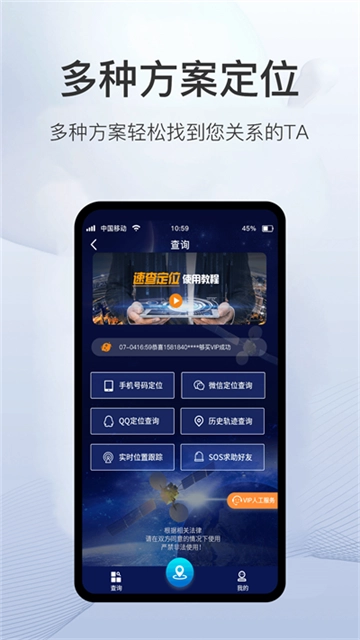 速查定位,作为一款专业的实时位置追踪与车辆信息查询应用,具备强大功能。借助精准定位技术,能让您随时随地查看亲友当下位置以及过往历史轨迹,还支持紧急SOS求助这一重要功能。与此同时,它提供专业的车辆检测服务,涵盖维修记录查询、事故风险评估等超过30项车况检测项目。所有数据均经过国家数据库认证,并且采用金融级加密手段,全方位保障用户隐私安全。值得一提的是,无需对方安装该应用,仅通过加密短信就能获取位置信息,无疑是您日常安全保障与车辆管理的得力帮手。
