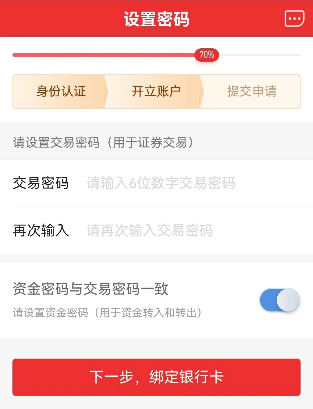 8. 密码设置为六位数字,其中交易密码用于登录,资金密码用于银行与证券账户间资金的转进转出。若忘记密码或需修改密码,均可操作完成。