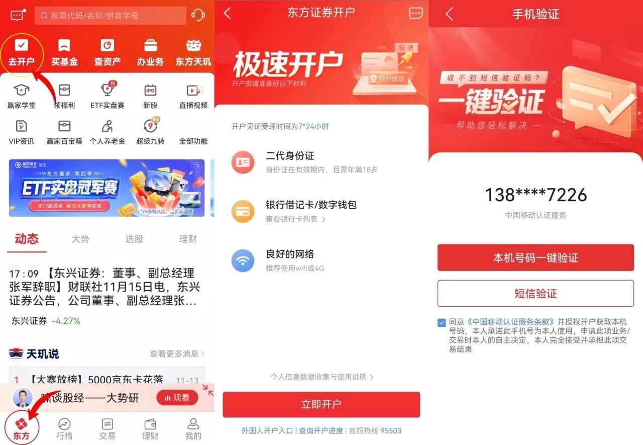 1. 东方赢家操作步骤如下:在首页依次点击【东方】→【去开户】→【立即开户】。若使用本机号码,可选择【本机号码一键验证】;若是其他号码,则选择【短信验证】,之后进入下一步。