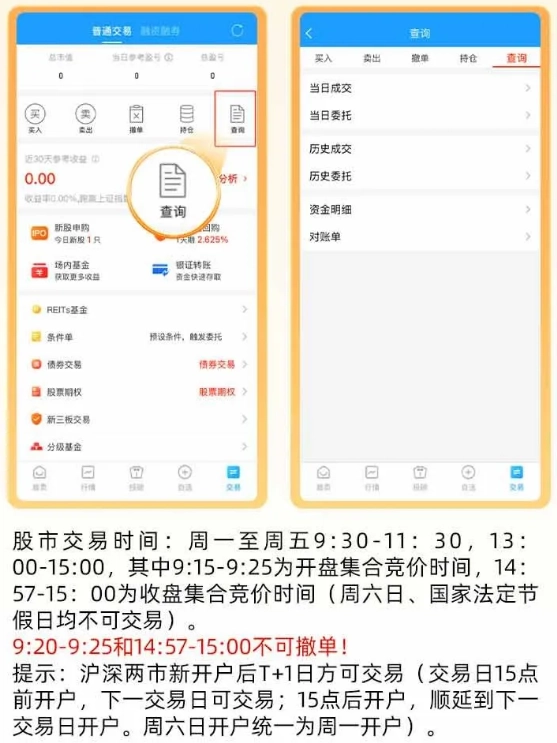 查询方式:【交易】-【查询】,即可查询当日交易情况。