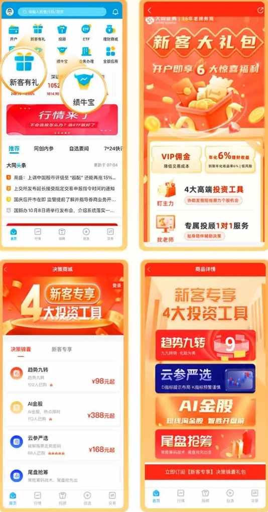 【首页】-【绩牛宝】-【新客专享】,可领取4大决策福利。