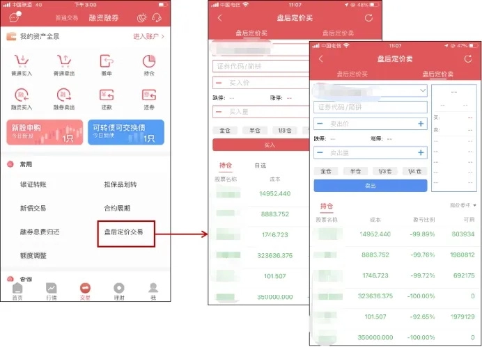 ●功能路径:底部交易-选择顶部融资融券-盘后定价交易