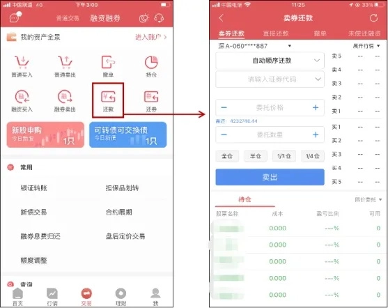 ●功能路径:底部交易-选择顶部融资融券-还款-直接还款