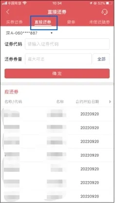 ●功能路径:底部交易-选择顶部融资融券-还券-直接还券