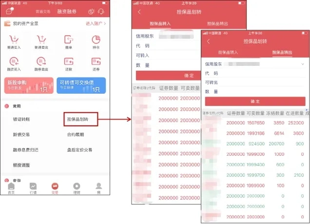 ●功能路径:底部交易-选择顶部融资融券-担保品划转-担保品转入/担保品转出