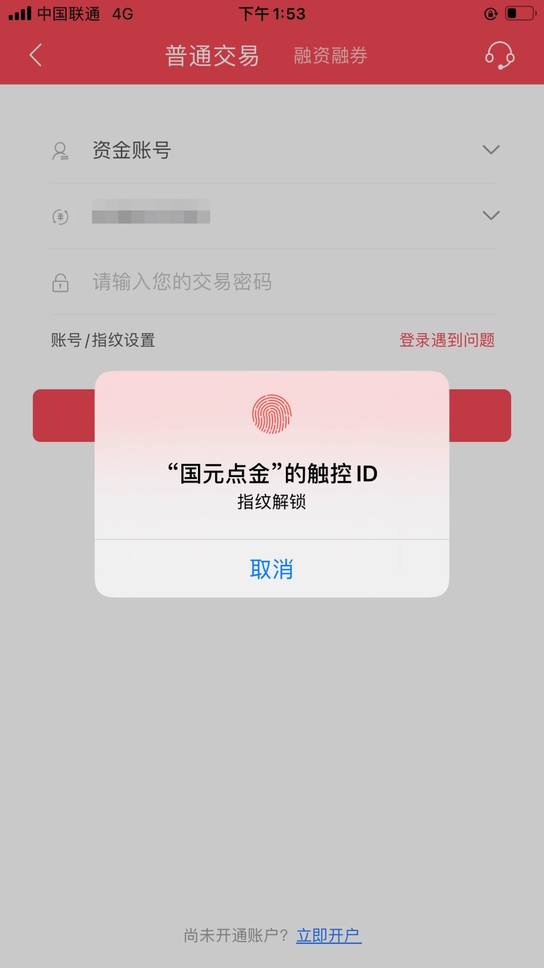 入口:国元点金-交易-交易登录-账号/指纹设置-指纹登录/面纹登录