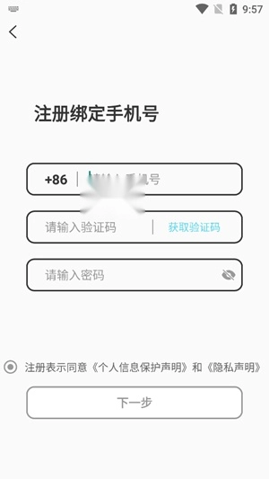 在注册界面输入手机号,验证码和密码信息,点击注册。