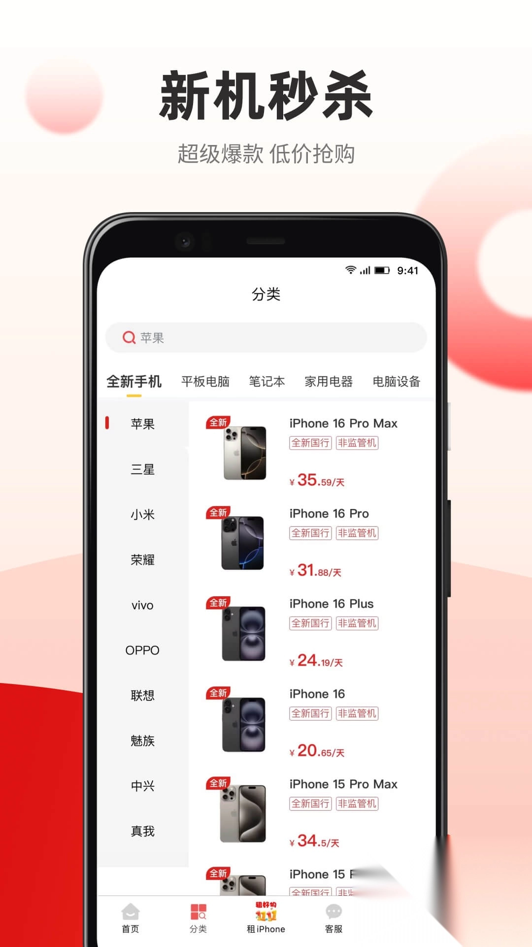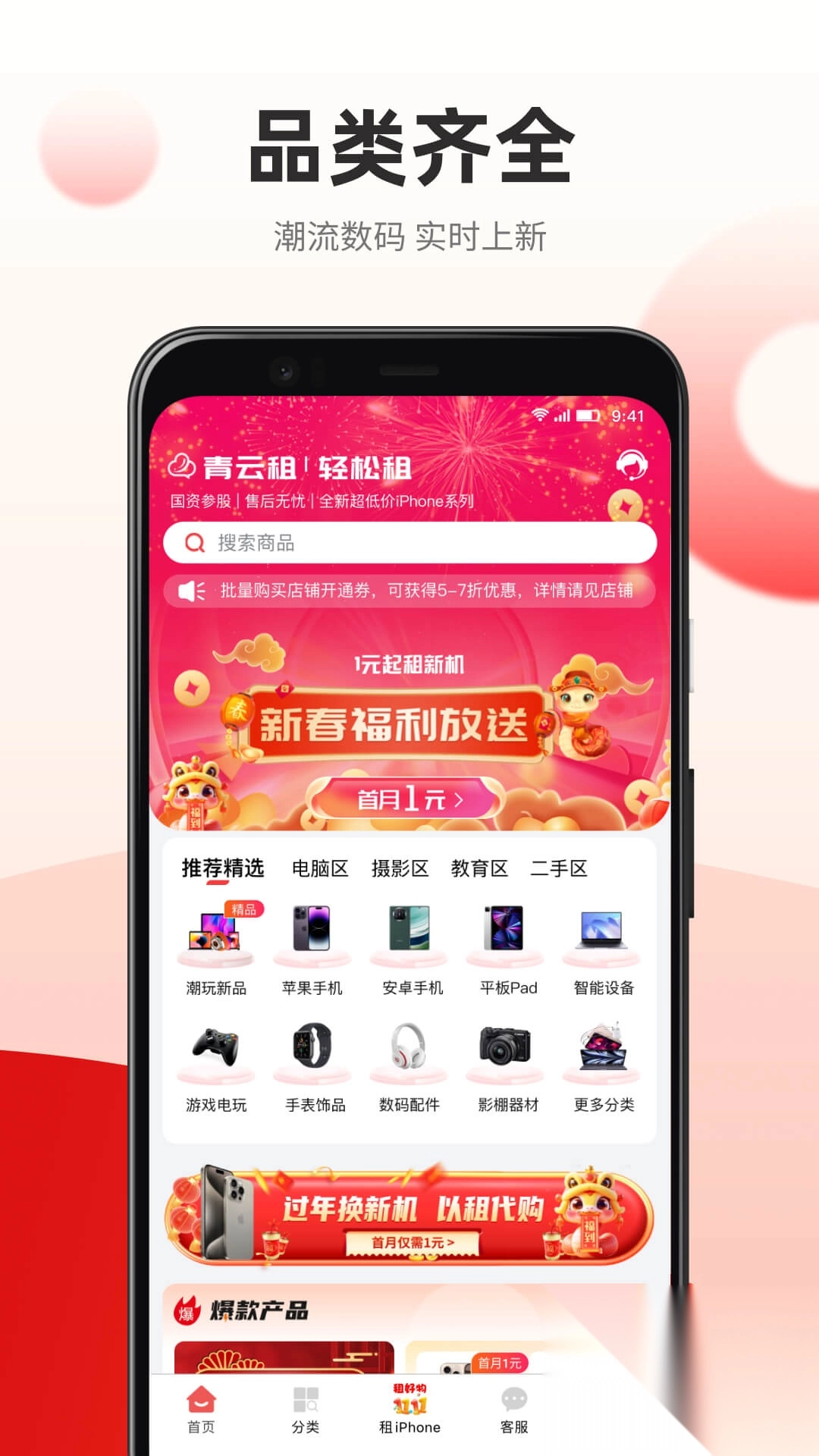 青云租,是一款专注于数码科技产品的租赁服务。它以共享经济模式为内核,借助信用体系,为商家与用户搭建起一个便捷且可靠的数码科技产品租赁平台。青云租开创了全新的租赁消费体验方式,让用户能够以低成本领略品质生活。无论是租手机、租电脑、租平板,还是租相机、租游戏机、租耳机,亦或是租家电、租无人机、租办公设备、租店设备等,品类一应俱全。