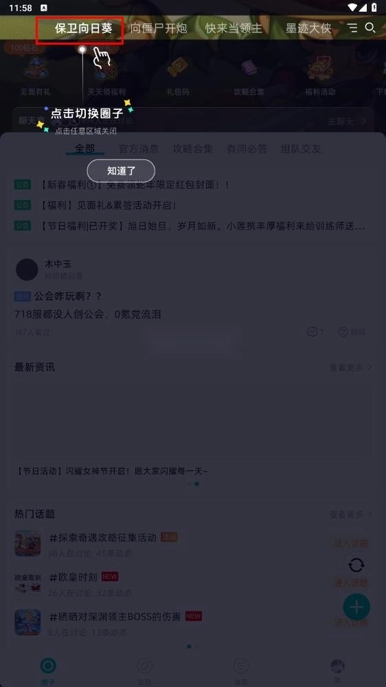 3. 点击上方的游戏,即可切换至不同游戏的社区论坛。