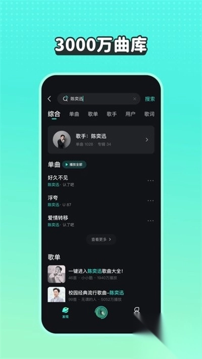 1. 【全曲盛宴】坐拥亿万正版动听旋律,音乐风格横跨华语乐坛与全球各地,彻底挥别音乐荒漠,让你尽情遨游在无尽的歌海之中,畅享音乐的饕餮盛宴。