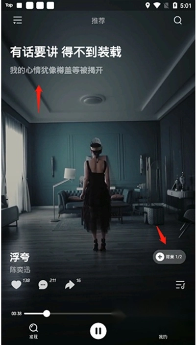 3、波点音乐采用视频音乐模式,歌词位于左上方,点击右侧“+”还能自行制作背景。