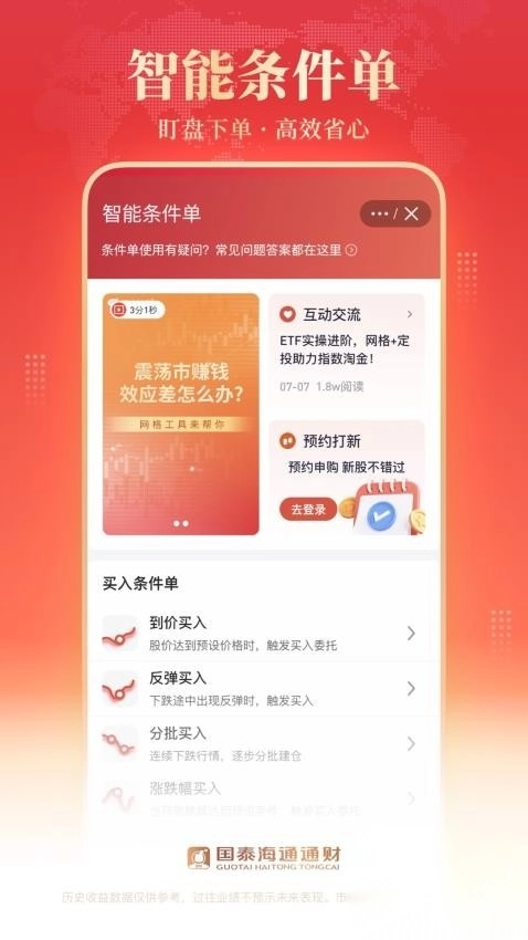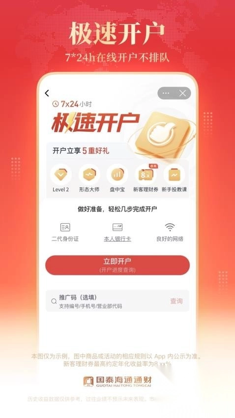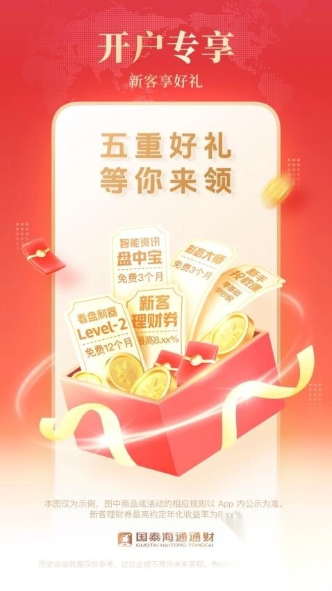 国泰海通通财,乃是海通证券匠心打造的标杆级炒股理财平台,为众多投资者呈上一站式综合财富管理服务。该平台融合行情、交易、理财、资讯以及人工智能等诸多模块,其目的在于助力投资者更为高效地做出投资决策。它不但能够满足用户单纯的开户诉求,还支持用户直接在应用内进行选股炒股操作,让用户能轻松购入自己所看好的金融投资产品。此外,用户还可享有丰厚的开户大礼,完成开户后就能在线领取,助力理财投资更加实惠。