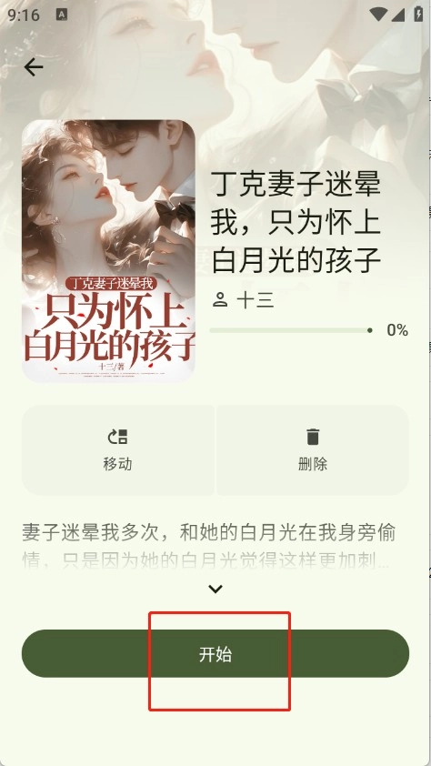 3、点击你想看的小说,进入详情页面后,再点击“开始”。