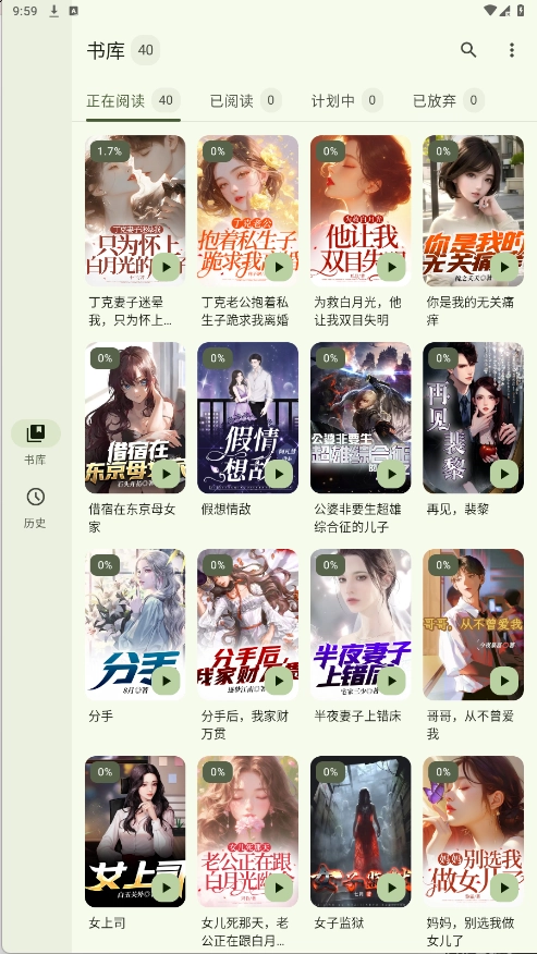 2、“书库”页面拥有大量的小说资源。