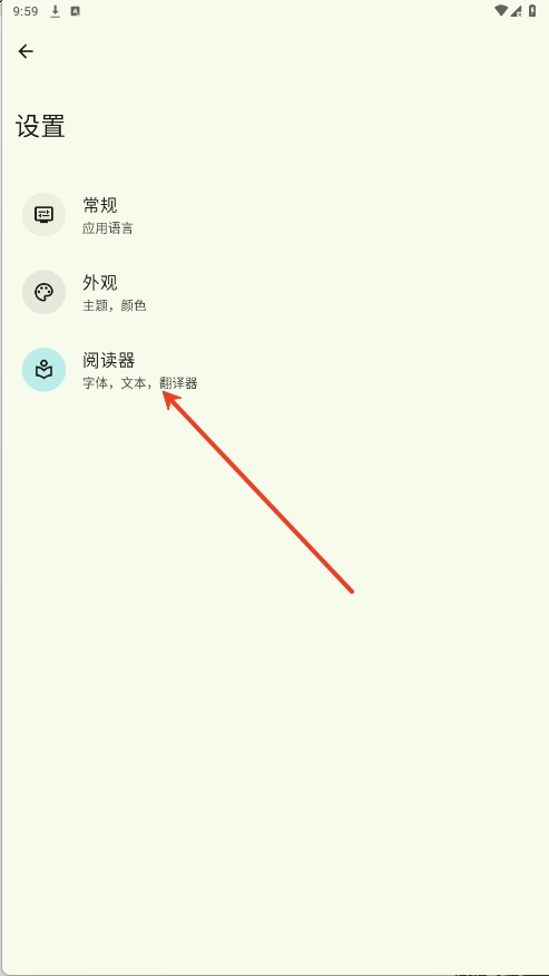 4、在设置界面,用户点击选择【阅读器】来完成设置。