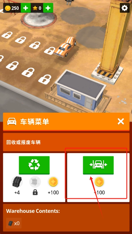 2、让你选车辆处理方式,左边回收得零件,右边报废拿金币。