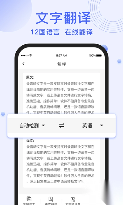 3. 具备在线实时翻译功能,支持多种语言相互翻译,专业且智能,使语音翻译更为简便。