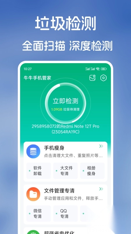 牛牛手机管家,作为一款综合性智能管理工具,融合了手机清理、安全防护、性能加速以及隐私保护等诸多功能,能满足多种手机型号用户的需求。它借助深度扫描、智能优化与实时监控手段,有效解决诸如手机卡顿、内存不足、病毒威胁之类的问题,助力设备始终保持如新的运行状态。