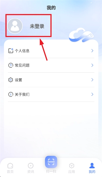 请在我的界面上点击“未登录”选项。