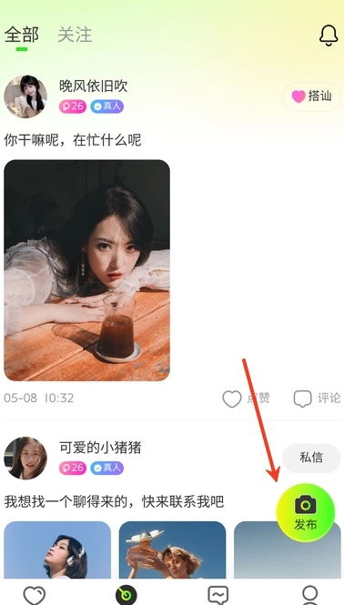 2、用户可以进入动态圈,并且也可以点击“发布”按钮。