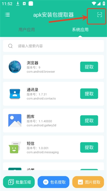 1. 开启软件后,能够在【用户应用】与【系统应用】之中任选其一进行提取。
