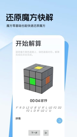 转魔方是一款专门针对魔方爱好者,特别是新手打造的魔方还原指导利器。用户仅需轻松扫描魔方每个面的颜色,软件就能自动识别,并给出对应的还原步骤。不管是期望在十分钟内学会还原的入门新手,还是致力于刷新速拧纪录的竞技选手,亦或是热衷于收集稀有魔方的收藏家,转魔方都能为他们给予全方位的支持与指导,助力他们持续提升。