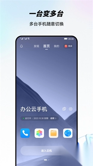 移动云手机新版本为用户提供了云端存储、通话公私分离、高速、多设备同时在线、云端虚拟手机等超多实用且强大的功能,操作便捷好管理。此外,软件界面还有多重实用的服务小组件供大家使用,排版清晰,云机服务一键触摸达到,感兴趣的朋友不要犹豫,快来本站使用吧!
