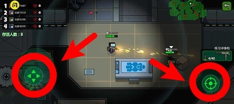 2.熟悉控制按钮,左下方向键控制移动,右下按钮负责瞄准射击,操作流畅是关键。